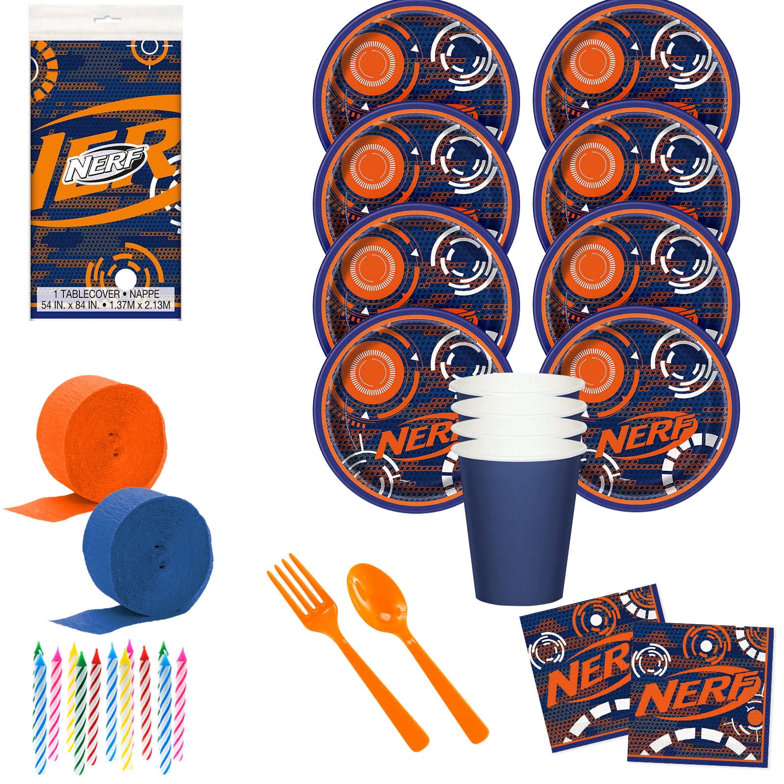 After they are over my husband always. Blast off for birthday fun! All party kits tableware balloons decorations personalized favors pinatas & candy cake supplies costumes. I really like how the party food table was set. This nerf party was lots of fun to create. It is full of photos, so grab a cup of coffee, (a twinkie,) and settle in.this is a long one. Find nerf party supplies at the lowest guaranteed price. We had blue and orange themed food and used targets as a focal point. See more ideas about nerf party, nerf gun party, nerf birthday party. Parties are one of my very favorite things to do! To prepare for your nerf gun party you need to create your bases, battlefield, and diy nerf targets. Dual use, decoration and targets. Instantly download these nerf party printables, invitations & decorations!